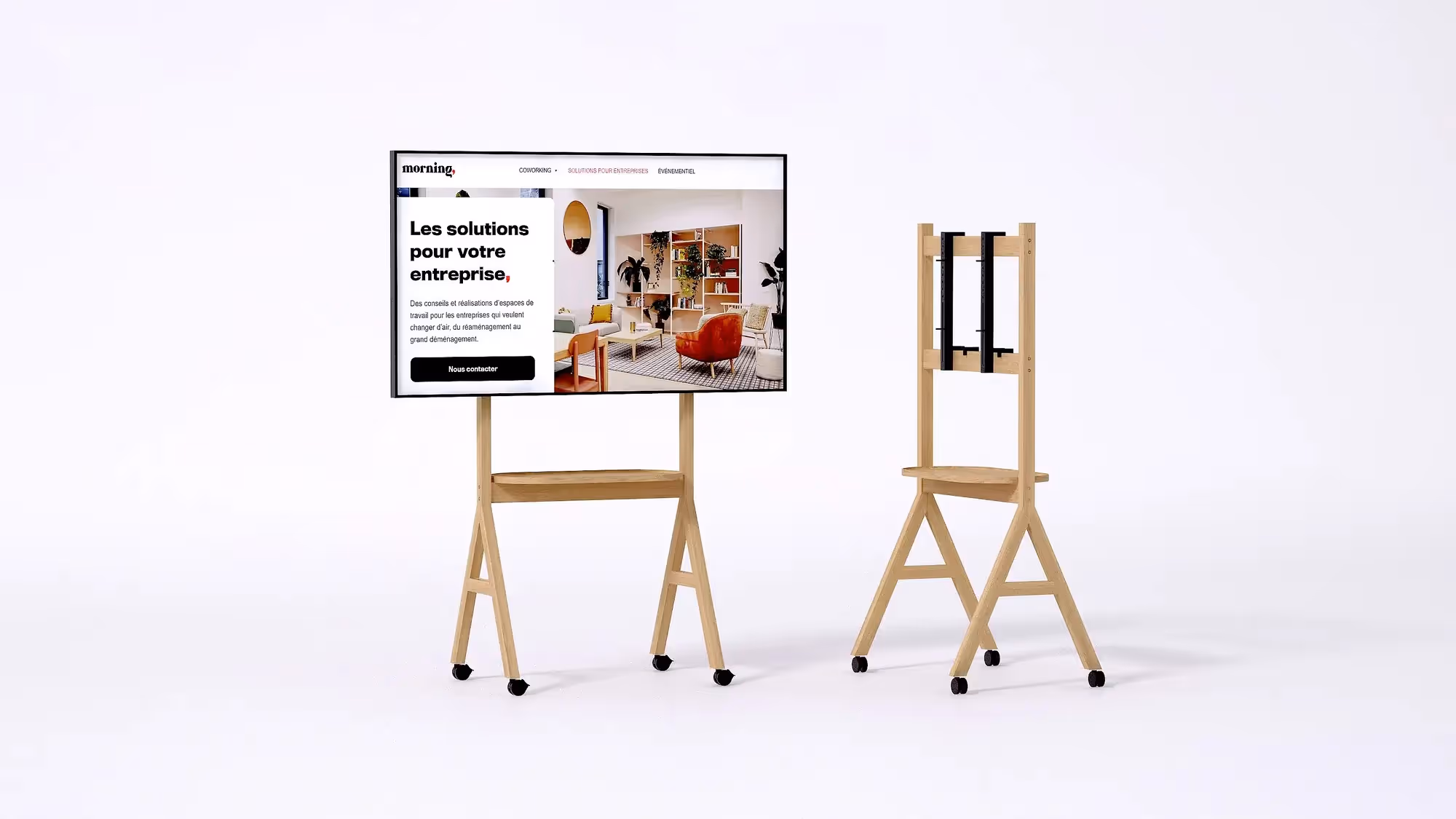 Loin d'être laid. Un meuble mobile et élégant pour des salles de réunion bien équipées. Il s'adapte à tous types d'écran mural et d'espaces.