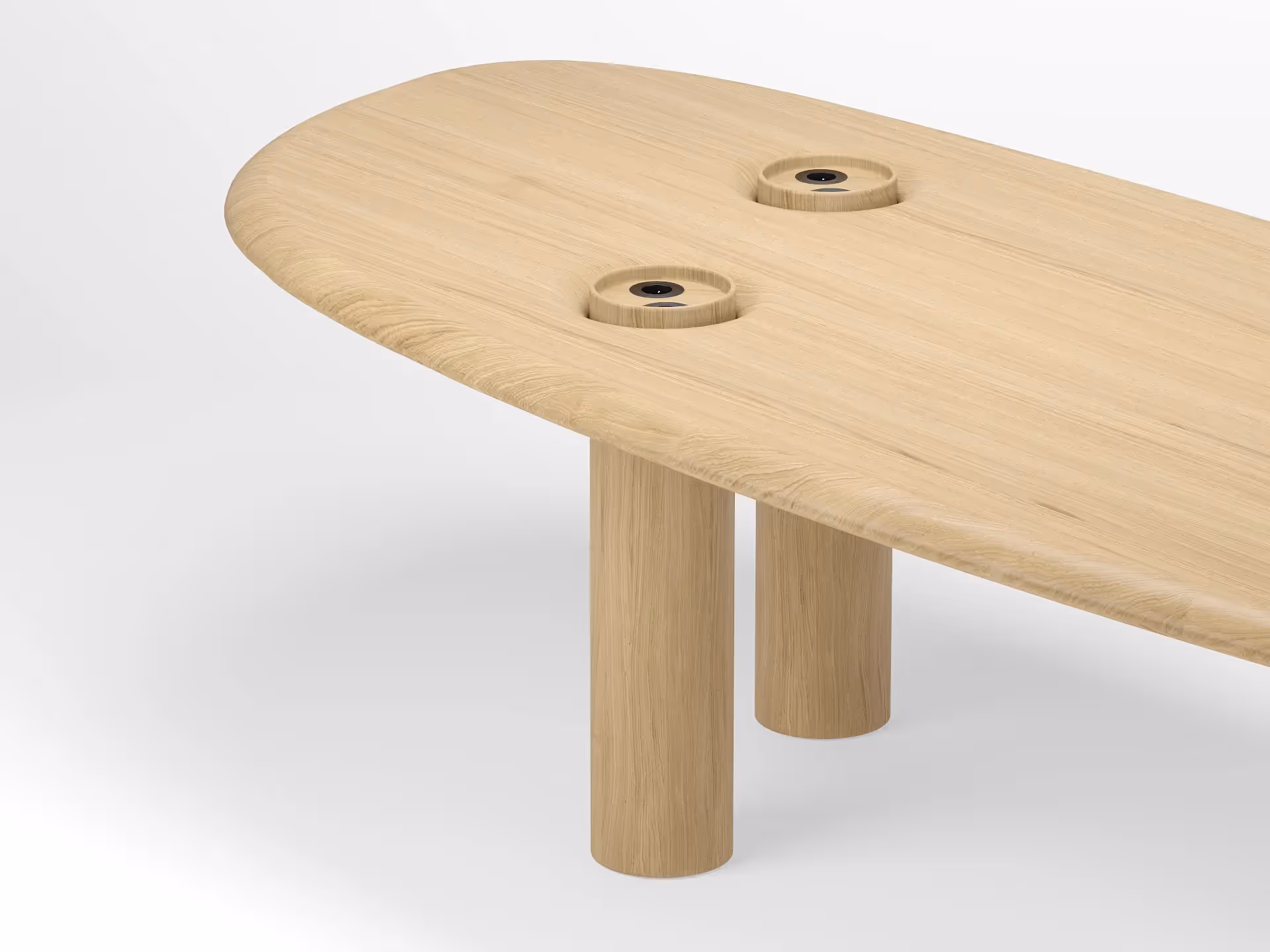 En chêne massif, mais pas mastoc. Une table sculpturale pour des réunions inspirées. Prenez place !