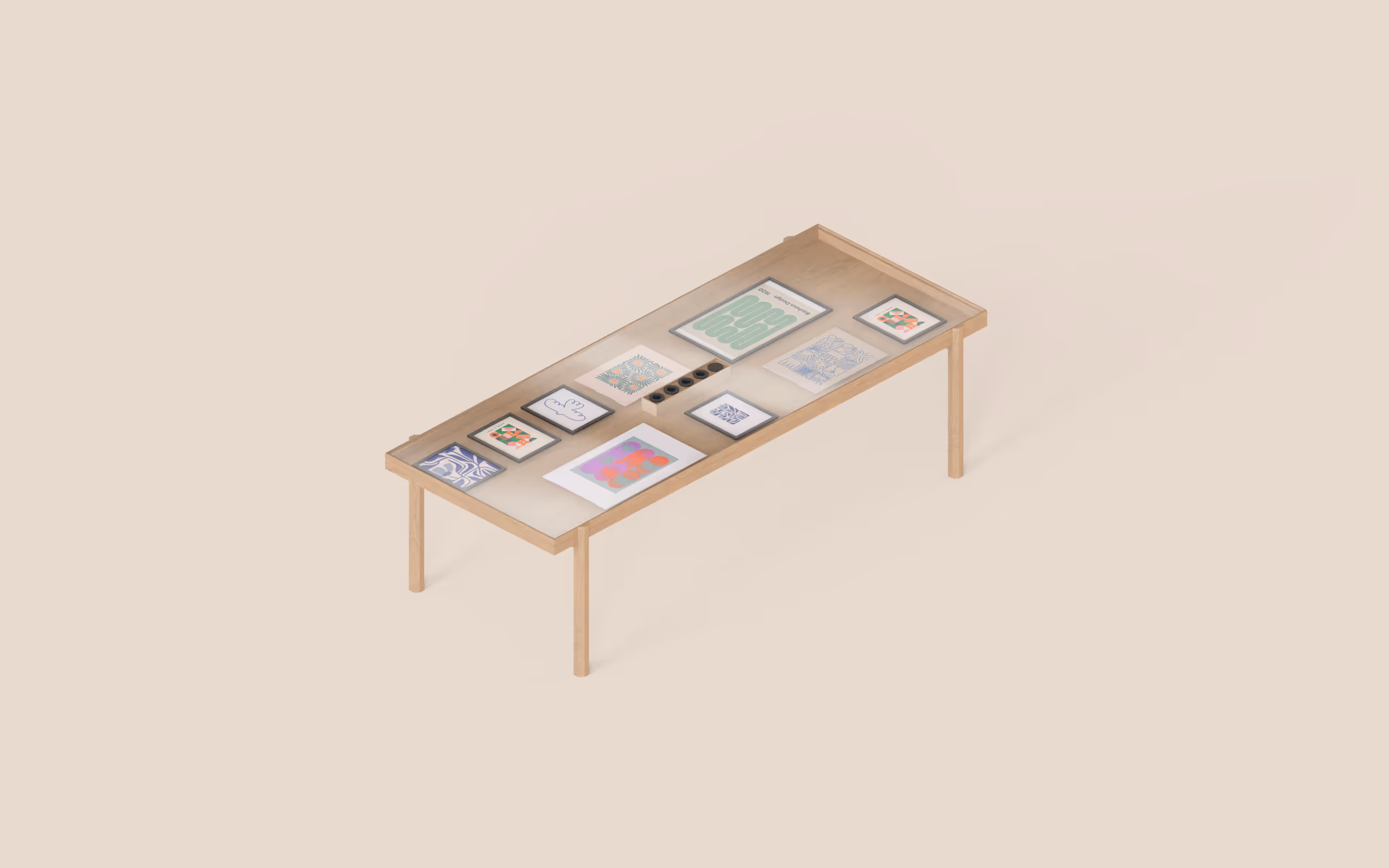 Les éléments de décoration placés sous verre permettent de personnaliser le meuble et de lui donner des vies différentes. “Les utilisateurs pourront aussi se l’approprier et faire évoluer la table selon leurs envies, au fil des années”, nous précise Julian.
