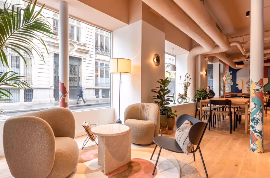 Morning Mogador est situé dans le 9e arrondissement, l'un des plus dynamiques de Paris. Le bâtiment - réhabilité par Axel Schoenert, à l’instar de l’immeuble de Morning Trocadéro - profite d'un écrin d'exception dans le pur style haussmannien, et est habillé d'une grande coupole et d'escaliers en pierre de taille.