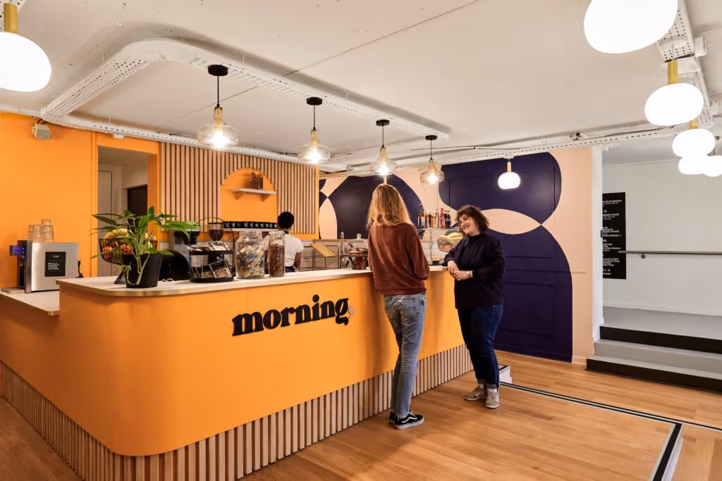 Ce nouvel espace accueille notamment Digital Native Group qui occupe les bureaux privatifs du 6ème étage. Cette agence de communication digitale qui accompagne les entreprises et leur identité de marque, revient chez Morning après des années d’absence. Vous pourrez également croiser Principles for Responsible Investment (un réseau d’investisseurs aux pratiques plus responsables encouragé par l’ONU), Kactus (un prestataire d’événements pour les entreprises) et Ōpun (acteur de la transformation des organisations).