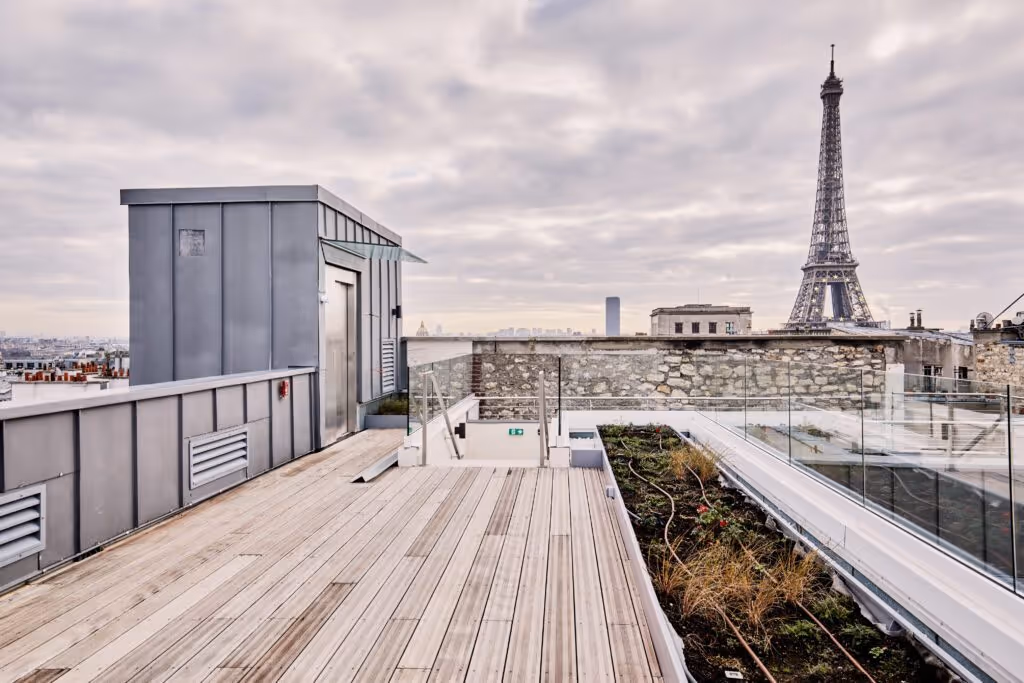Pour les 300 occupants de l’espace, le dernier niveau présente un atout inattendu. Tous les résidents pourront profiter de la terrasse panoramique du 7ème étage accessible par ascenseur. Avec en ligne de mire, la tour Eiffel, la tour Montparnasse, la Butte Montmartre et la basilique du Sacré-Coeur. Qui dit mieux ?