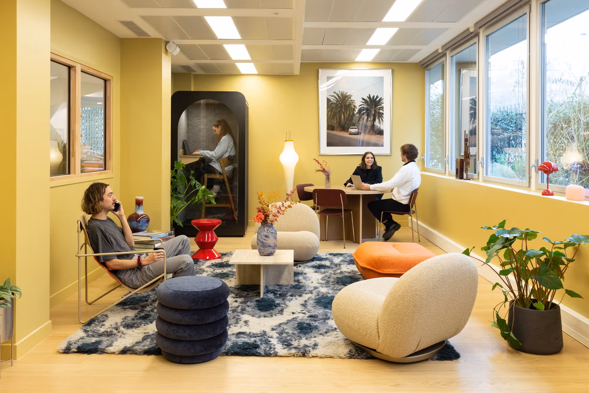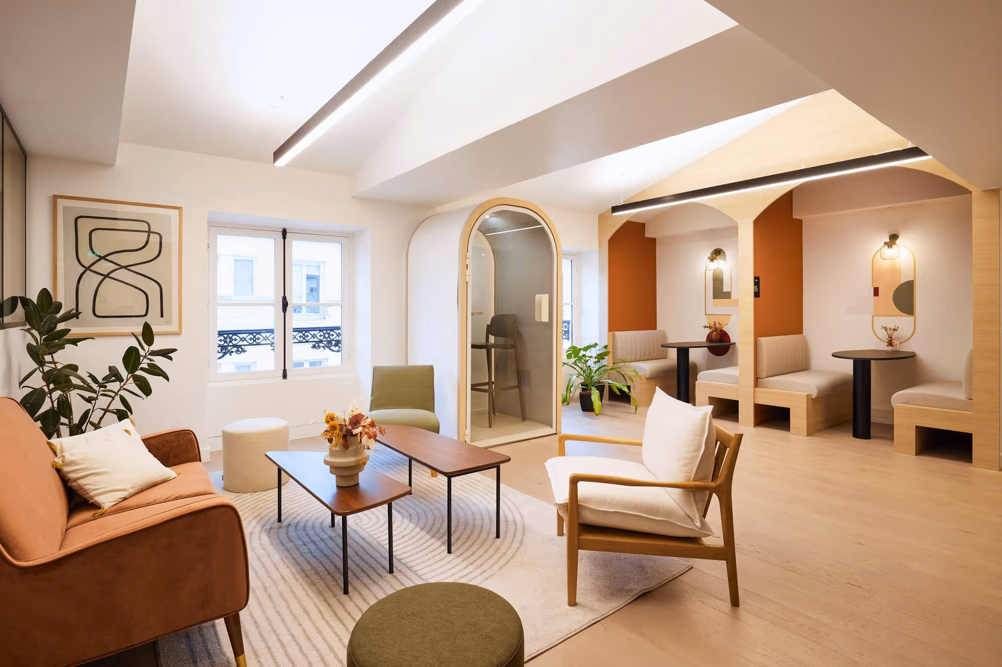 - Salles de réunion, phone boxes, comptoir café, salle de sport, événements, etc.